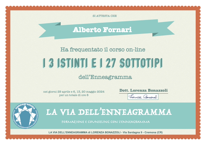 Si è trattato di un viaggio molto significativo nel cammino della mia crescita e della mia trasformazione personale ed è per me uno strumento aggiunto alla mia “cassetta degli attrezzi” per la mia Formazione e il mio Coaching.