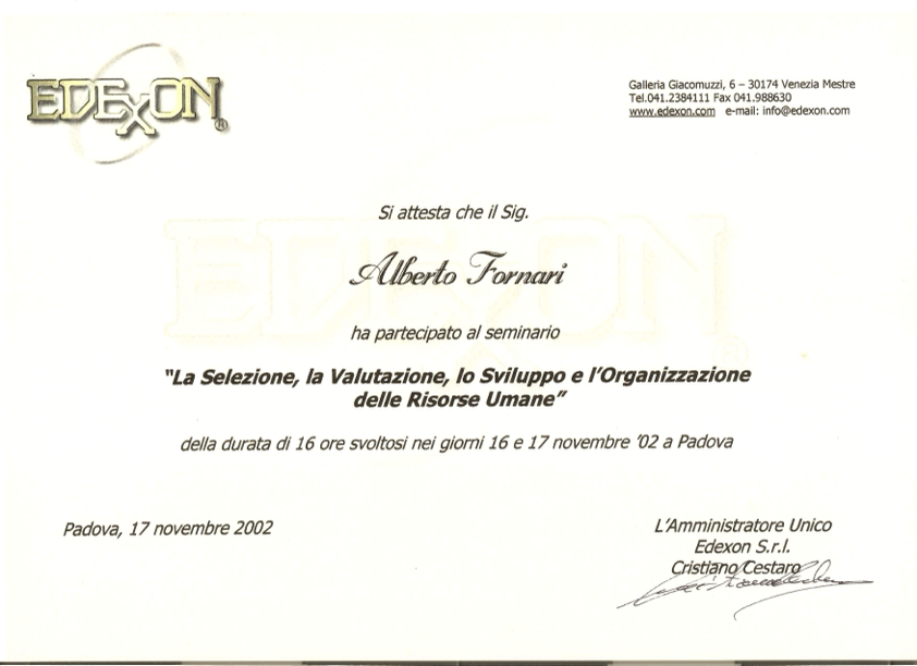 Corso e Attestazione a cura della EDEXON di VENEZIA